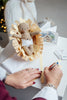 Es un precioso Niñito Jesús confeccionado en tela y bordado a mano, con pesebre de fieltro que incluye dos dinámicas: la primera es una actividad para realizar durante el tiempo de adviento y la segunda una dinámica para compartir durante la comida o cena de Navidad.